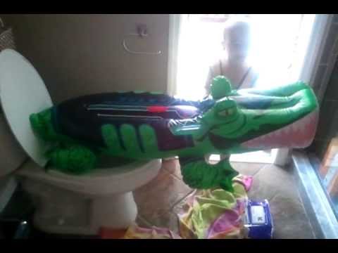 I walked by and heard him say "go potty and I will give you a gummy bear" and I see him holding the gator like this!!! I had to grab my phone! Lol (our potty training incentive is gummy bears, if u haven't guessed;-)) oh to have the imagination of a 3 year old!